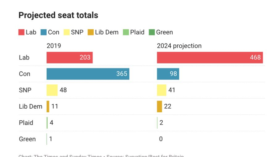 New polling released suggest the Tories may fall to less than 100 seats in the next general election with Sunak himself losing his own seat!