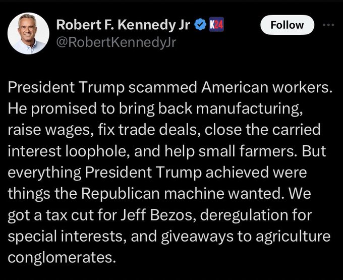 So much taking place, I don’t know which news story to take up. The Magadonians continue to twist themselves out of shape trying to justify their dear leaders shifting positions on RFK, abortion and whatever else he comes up with. They continue to trust him.