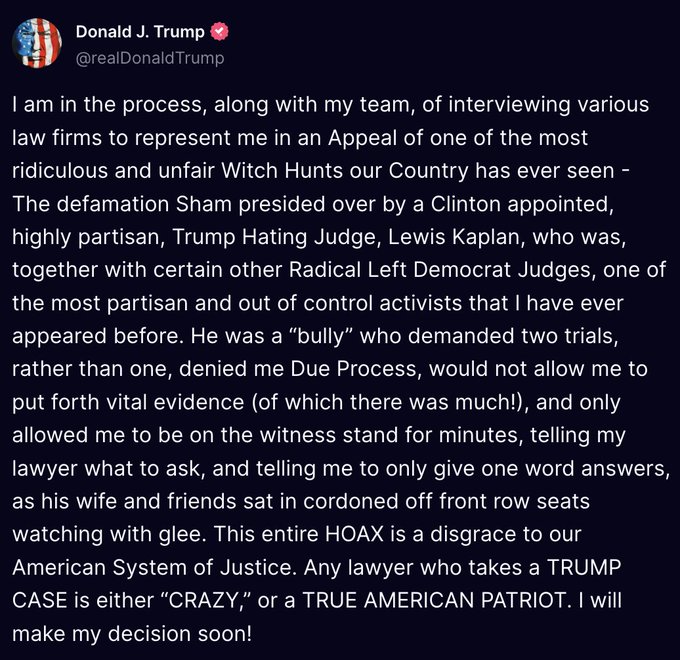Following the verdict, Maga was full of praise for Habba who was treated so badly in the courtroom defending the god etc etc etc. Habba posed for photos which got tweeted and retweeted in Maga world.