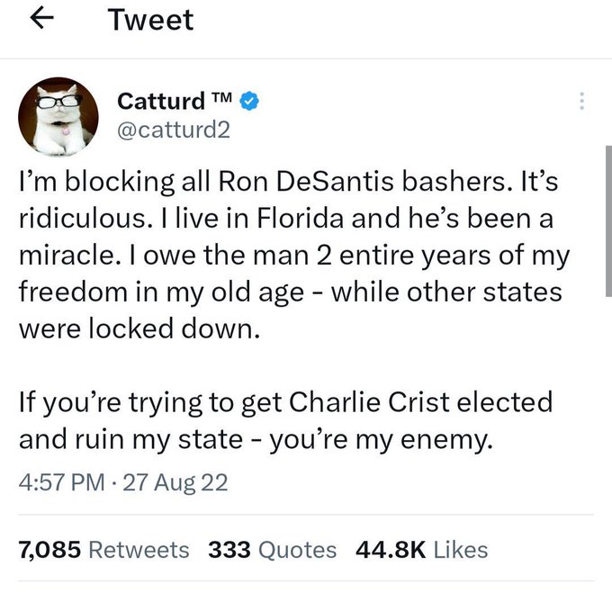 This “influencer” lives in Florida. Until Nov 2022, that is, before his god decreed otherwise, he posted the following: