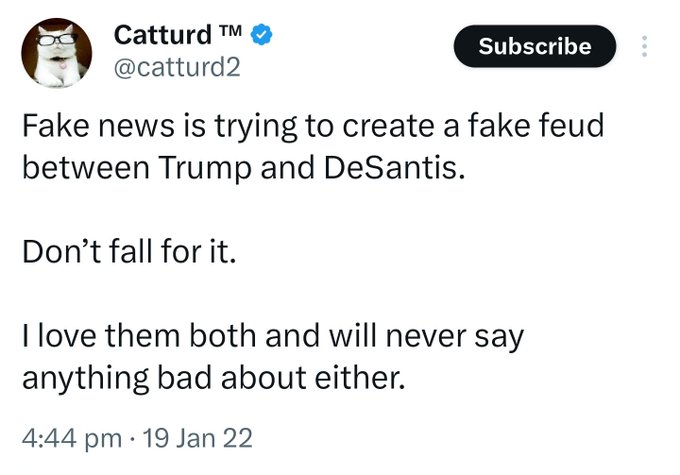 There is one Trump super-devotee who goes by the social media name Catturd. I’ll get to the other guy in the photo another day.This is not doxxing as the photo has been freely posted and re-posted several times on twitter.