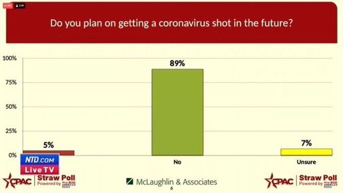 Trump is speaking at CPAC & he supports the vaccine. He says he won’t force it on anyone but he is in denial about the vaccine harming people.