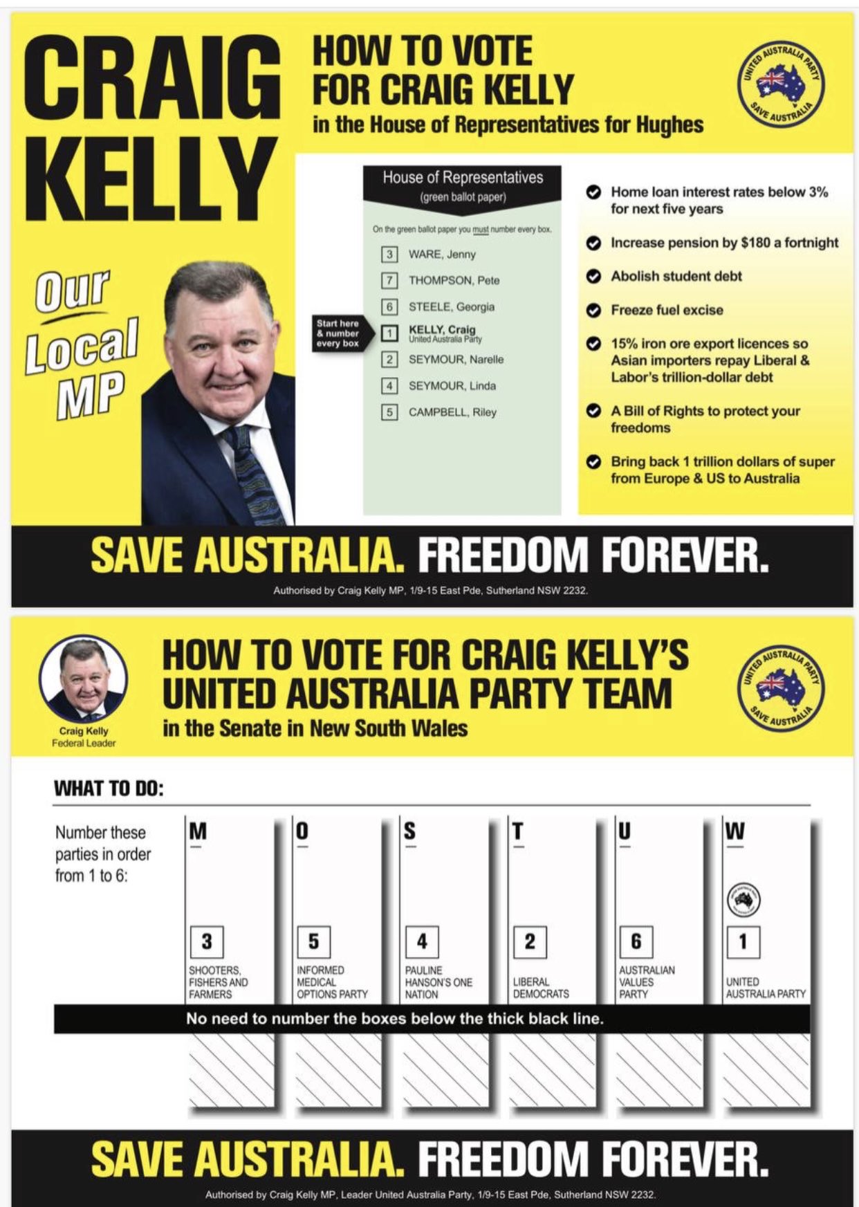 the SMH reports this morning that Liberal candidates in key seats will benefit from chair Clive Palmer’s preferences — even though Palmer said last week he’d urge voters to put the major parties last, as ABC writes. Several how-to-vote cards from the United Australia Party (UAP) show Liberal leanings — in the Sydney seat of Mackellar, Liberal MP Jason Falinski and UAP candidate Christopher Ball both put each other in second place, while in Wentworth, UAP candidate Natalie Dumer has recommended voters put Liberal MP Dave Sharma third, while Sharma put her second. The UAP says there was no deal done.