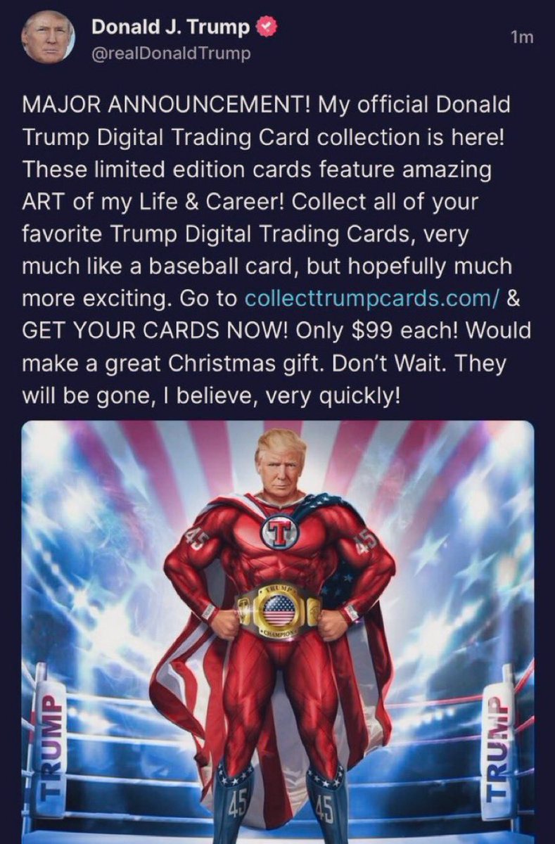 The cards sold out withing 24 hours. Does Trump really see himself as Superhero and the favourite President?