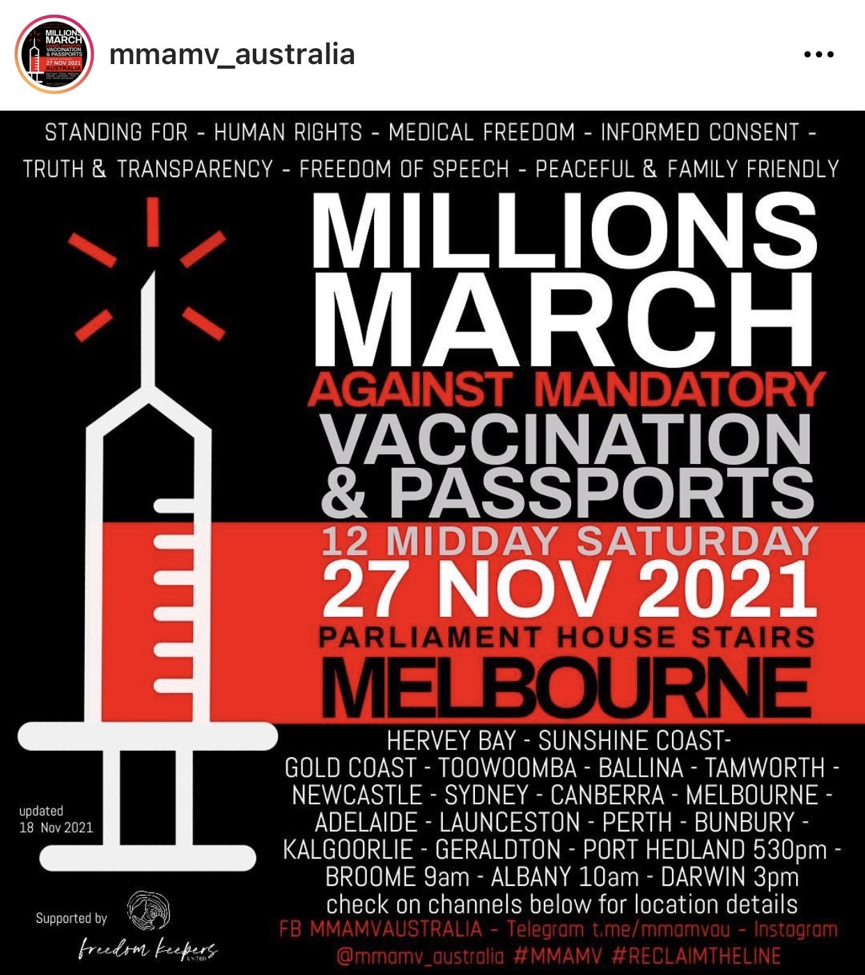 You’re not allowed to even question vaccinations mandates and mask mandates in Australia. That is an anti-vax position. You will (presumably) be jailed for speaking out against the state.