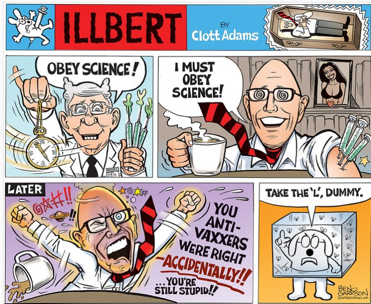 Scott Adams ⬆️ is pretending that “anti-vaxxers” got the best outcome due to lack of trust in government and corporations. That’s it.
