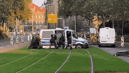 Sadly, it looks like it’s in Europe, probably in Germany- the van has “Polizei” on the side.