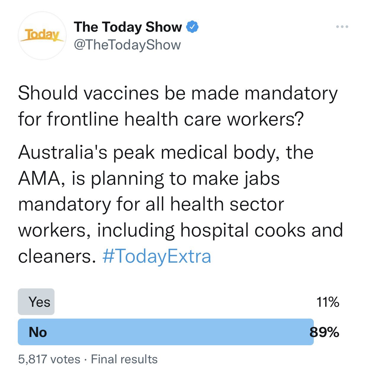 The era of ‘case’ based lockdown lifts is over, this is phase 2 of their plan: vaccination based lockdowns. I.e mass house arrest until you comply with a political policy decided by a secretive new government called the ‘national cabinet’ that nobody elected, and whose members have abolished state parliaments and all oversight.