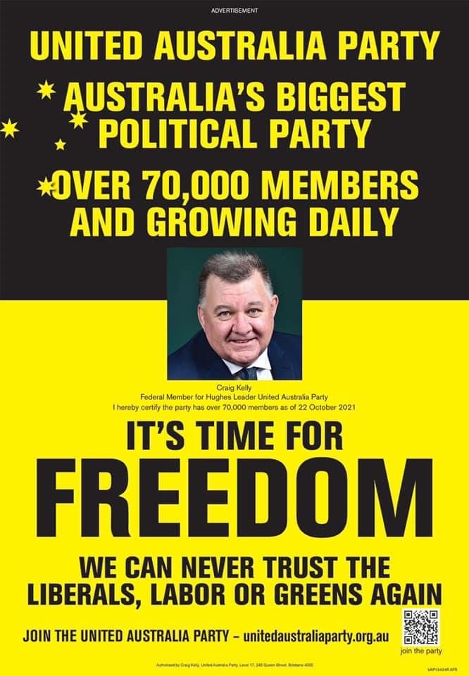 Possibly he has done a tacit deal with a major party to give them UAP preferences in exchange for something or other and he is using the anxiety and worries of people about the forced vaccination, threatened job loss and terrible things happening here in Australia, to gather membership and party position to force something on the major party to his advantage of some sort.